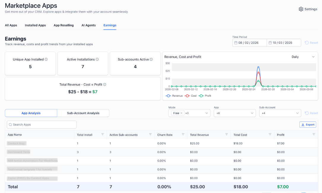, a new analytics experience that gives accounts clear visibility into app installs, revenue, costs, and profit, along with account–level contribution.This dashboard helps accounts move from manual tracking and guesswork to data-driven decisions about app usage, ROI, and client value.